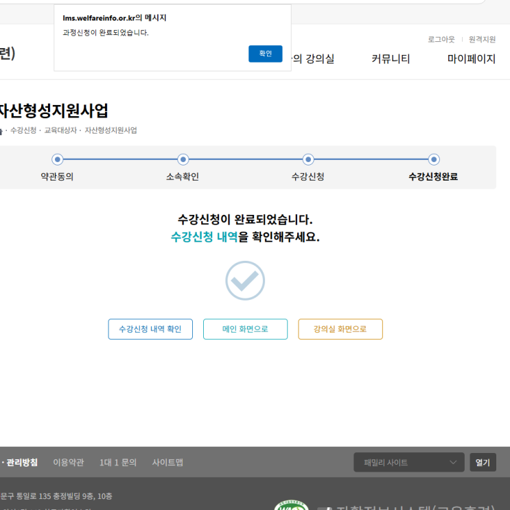 청년내일저축계좌(및 희망저축계좌1,2) 가입자 교육 수강 이수 사이트(홈페이지)