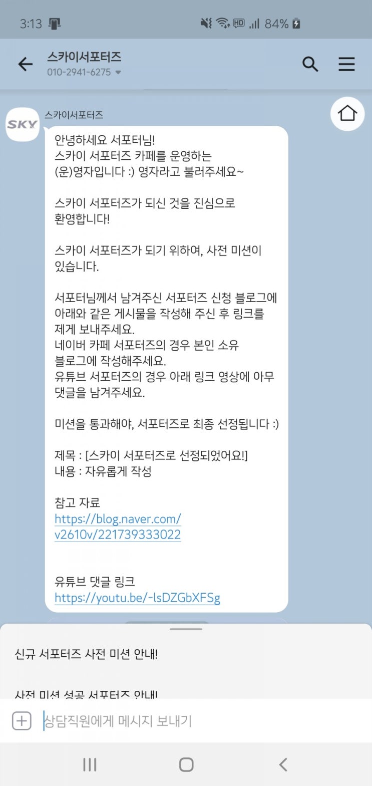 스카이 서포터즈에 선정되었습니다