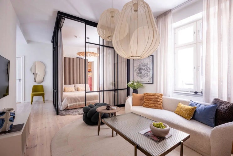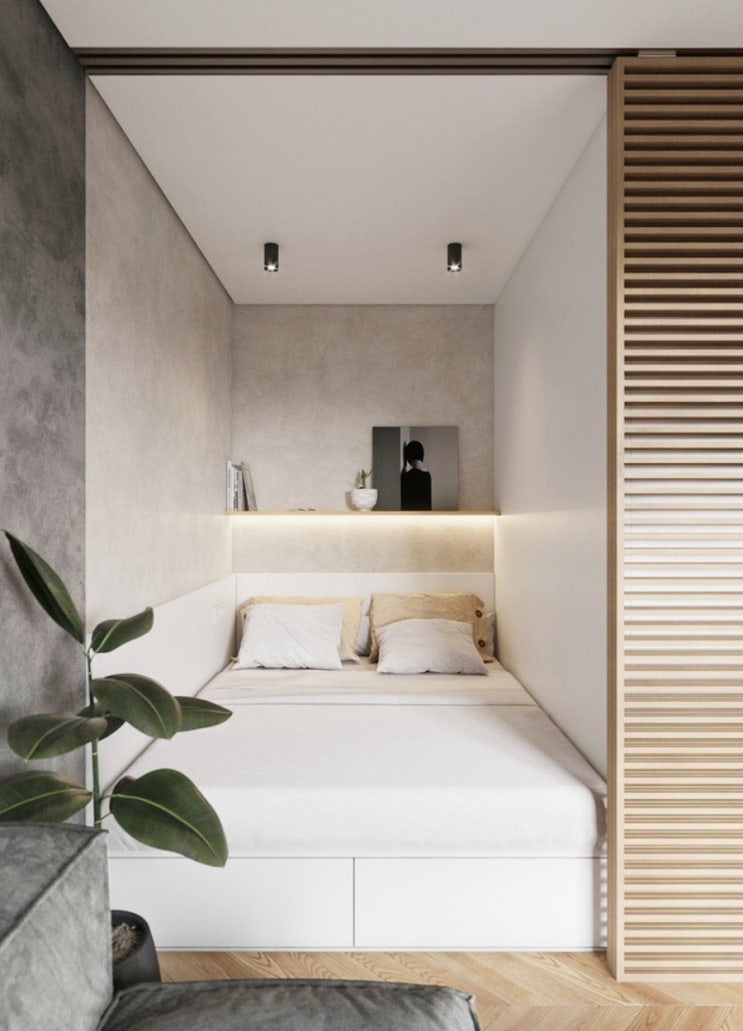 1.5룸 17평 북유럽 아파트 인테리어 유리 슬라이딩 도어 침실 드레스룸