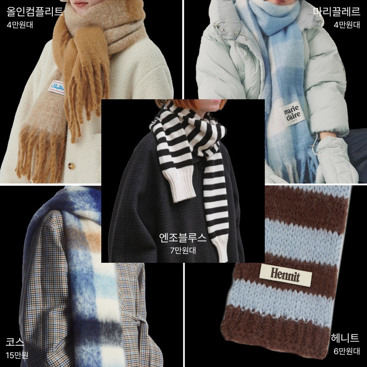 포인트로 주기 좋은 가성비 체크 머플러 추천 (코스,엔조블루스,마리끌레르,헤니트,올인컴플리트)