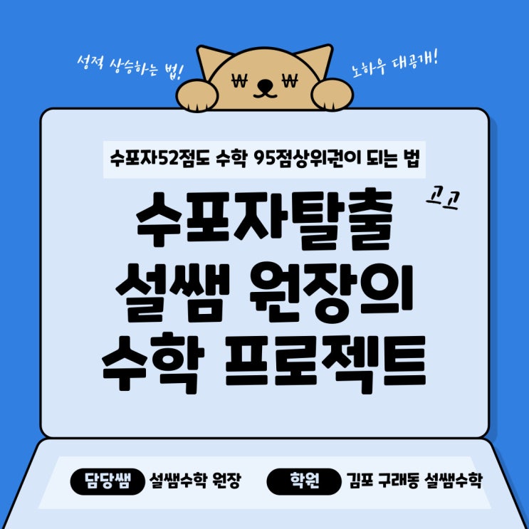 [구래동 수학학원] 수포자탈출! 중등 수포자 52점에서 95점 상위권이 되는 법! 설쌤원장의 수학 프로젝트!