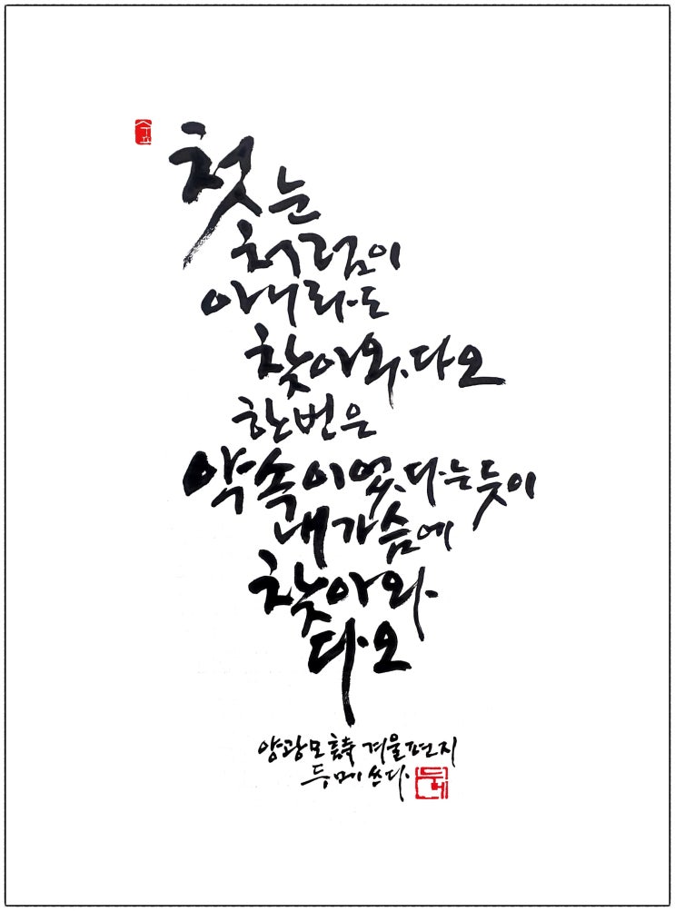 겨울 편지 / 양광모 부탁이 있다 첫눈처럼 찾아와 다오 그리움으로 몆 번이고 하늘 바라볼 때 문득 내 가슴...