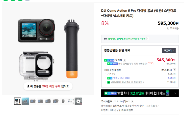 #네이버 #멤버십 #데이 #오즈모 #액션5 #할인 짭프로는 이제 버리고 새로운 액션캠을 사려고 준비중이었다....
