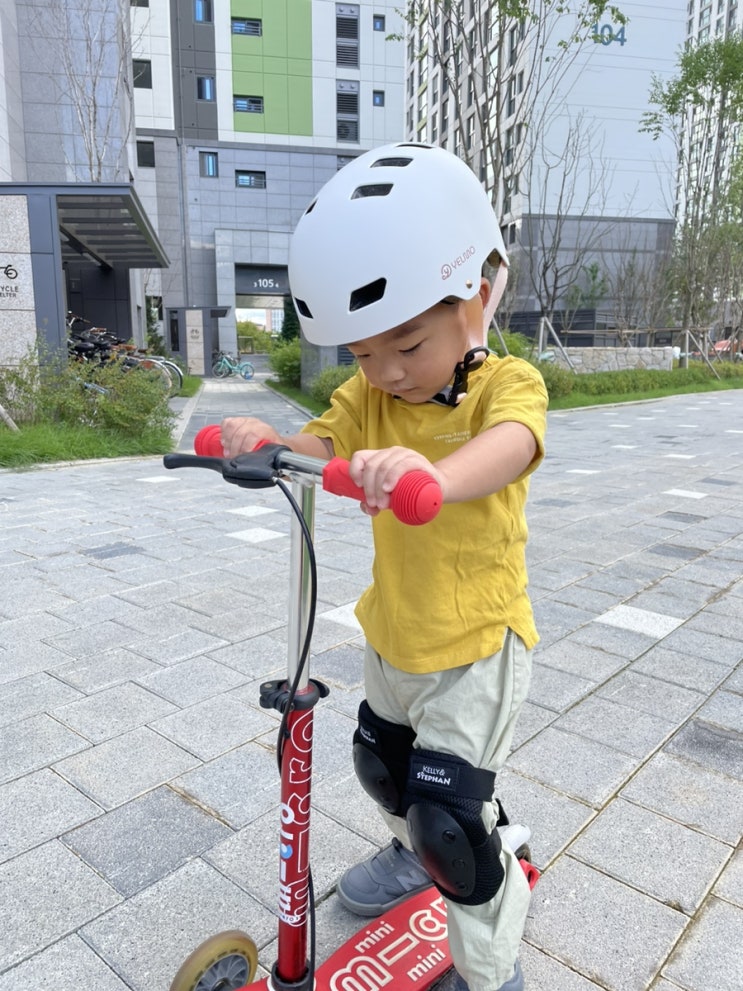 유아 킥보드 헬멧 라라웨이 옐모 헬멧 쓰고 첫 킥보드 연습