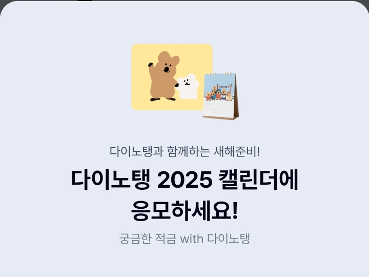 케이뱅크 궁금한 적금 연말 이벤트 다이노탱 캘린더 (이벤트 기간 12/12~12/31)
