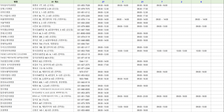 의정부 2025년 설연휴 문 여는 의료기관 및 약국 안내