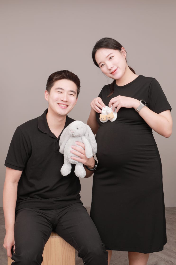조리원 연계 스튜디오에서 만삭 사진을 찍긴 했는데 우리가 원하는 스타일이 아니었어서ㅜㅜ... 우리끼리 ...