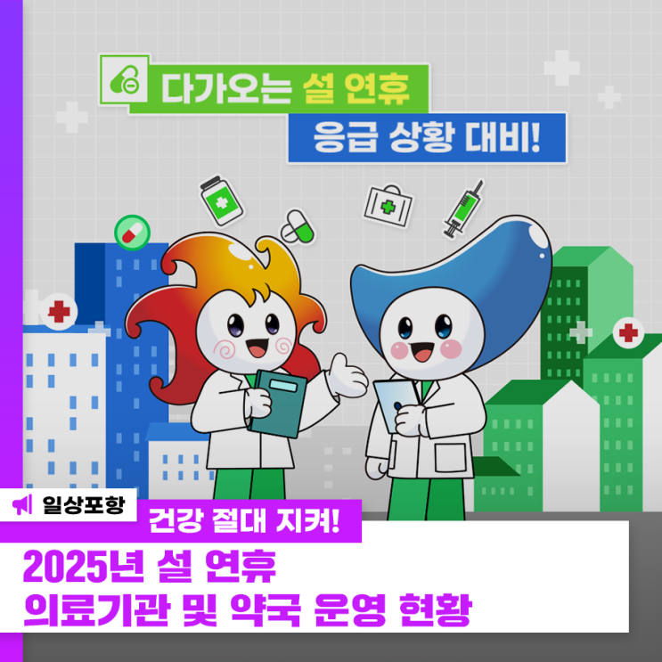 설 황금연휴! 건강 절대 지켜! 2025년 설 연휴 포항시 의료기관 및 약국 운영 현황 안녕하세요. 포항시입니...