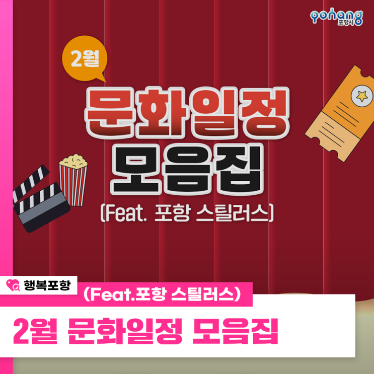 2월 문화일정 모음집 (Feat. 포항 스틸러스) 안녕하세요. 포항시입니다. ? 벌써 다가온 2월 포항의 문...
