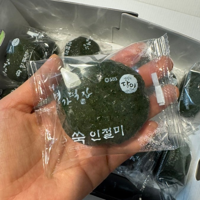 간식으로 좋은 부산 기장 밥알쑥인절미 풀하우스쑥떡. 모두 4박스로 되어 있다. 2.8kg. 하나씩 포장되어 있...