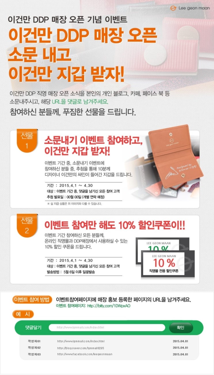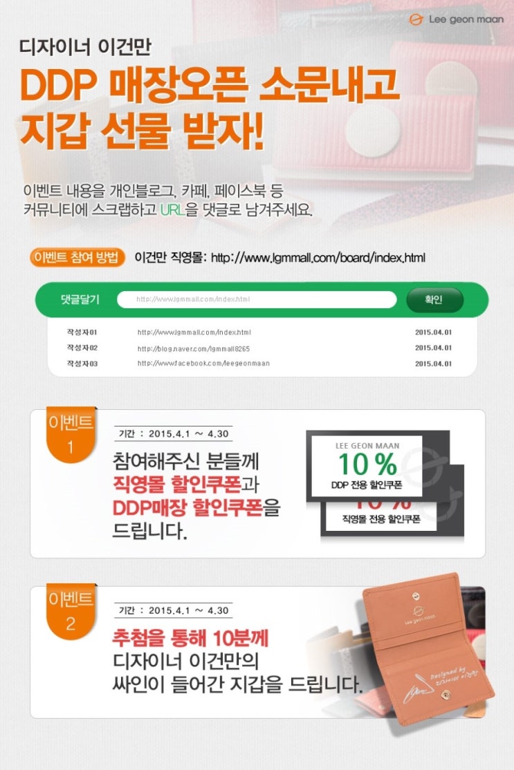 디자이너 이건만 DDP 매장 오픈기념 이벤트/동대문디자인플라자/소문내기