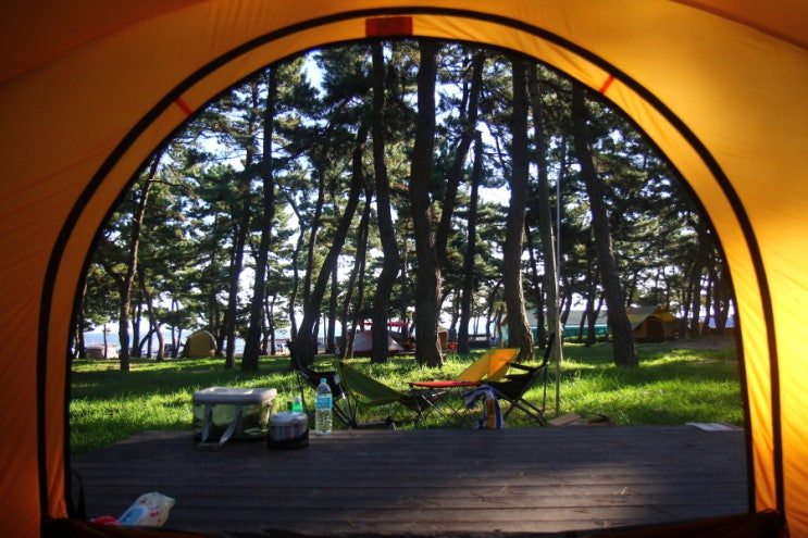 텐트 문 열면 바다가 보이는 캠핑장... 솔향 가득한 강릉 연곡솔향기 캠핑장 입니다. 집사람...