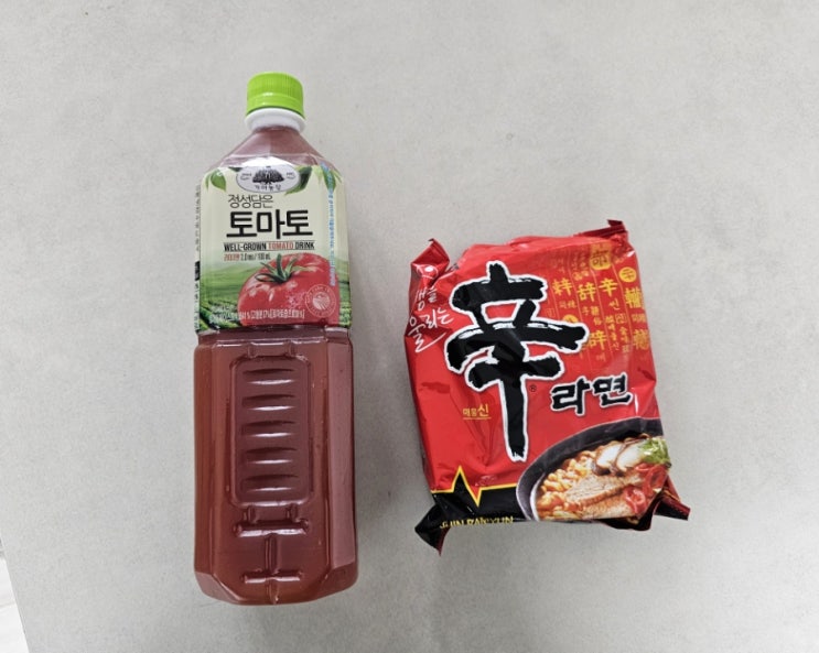 2024.12.25.수 몇달 전부터 사다놓았던.. 토마토주스와 신라면 귀찮아서 계속 쳐다만 보고 있다가, 드디어 ...