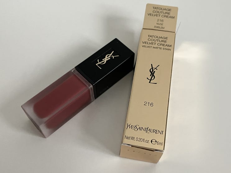 [선물 - 감사합니다] 생일 선물 받았다 ❤ 입생로랑 따뚜아쥬 꾸뛰르 벨벳 틴트 216 누드 엠블럼
