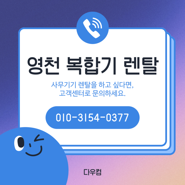 솔반렌탈 상담 문의 : 1661-1494 서비스 지역 : 부천, 인천 서비스 품목 : 복합기, 복사기, 프린터 안녕하...