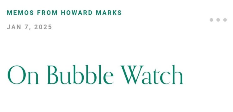 2025년 첫번째 하워드막스 메모가 나왔습니다. 제목은 On Bubble Watch 버블에 대한 관찰 정도가 되겠네...