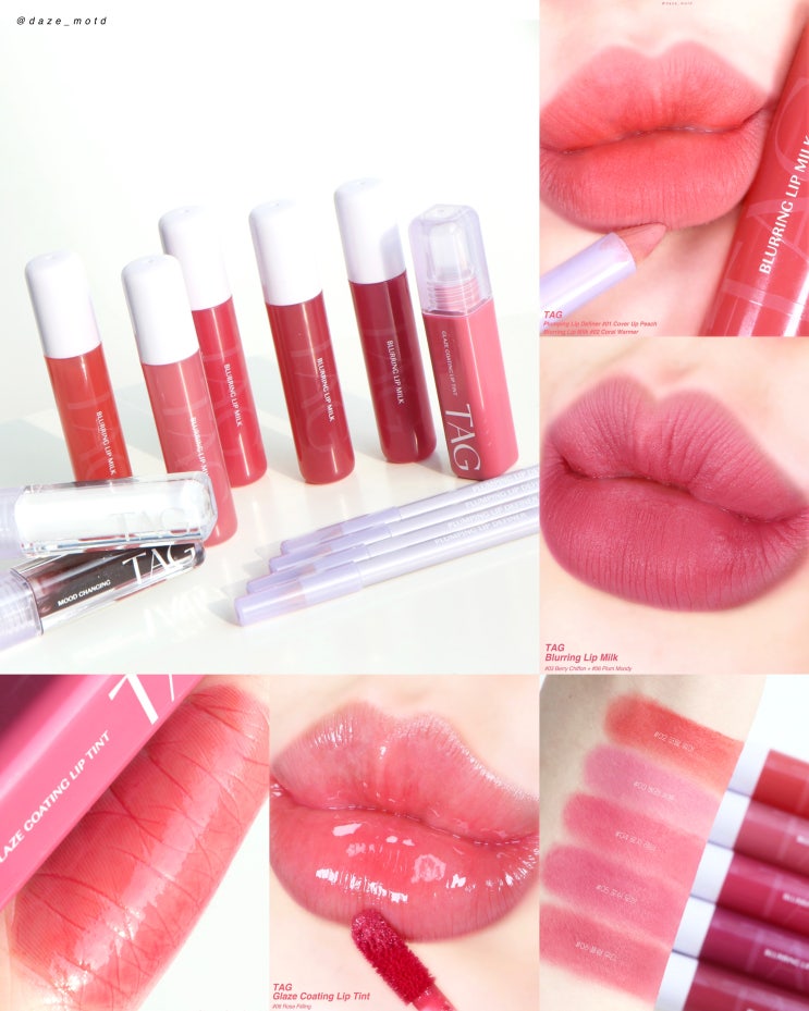 TAG 태그 벨벳 블러 틴트부터 글로스 글로우 틴트 플럼핑 립라이너까지! 웜톤 쿨톤 꿀조합 추천