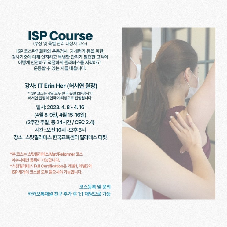 스탓 필라테스 더핏 3명의 한국인 교육강사가 티칭(3월 일정 첨부) 안녕하세요? 스탓 필라테스 더핏 입니다...