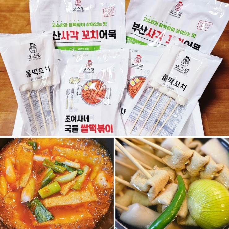 캠핑 분식 밀키트: 쏘스윗 쌀 떡볶이, 물떡꼬치 어묵밀키트