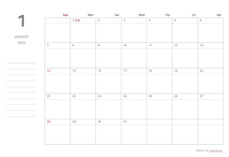 바빠서 블로그활동은 뜸해도 2024년 달력양식 업로드는 빼먹을 수 없죠! 이제는 달력양식 만들기가 저의 연...