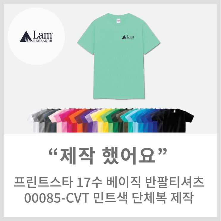 [메이드올] 프린트스타 17수 베이직 반팔티셔츠 00085-CVT 민트색 단체복 제작