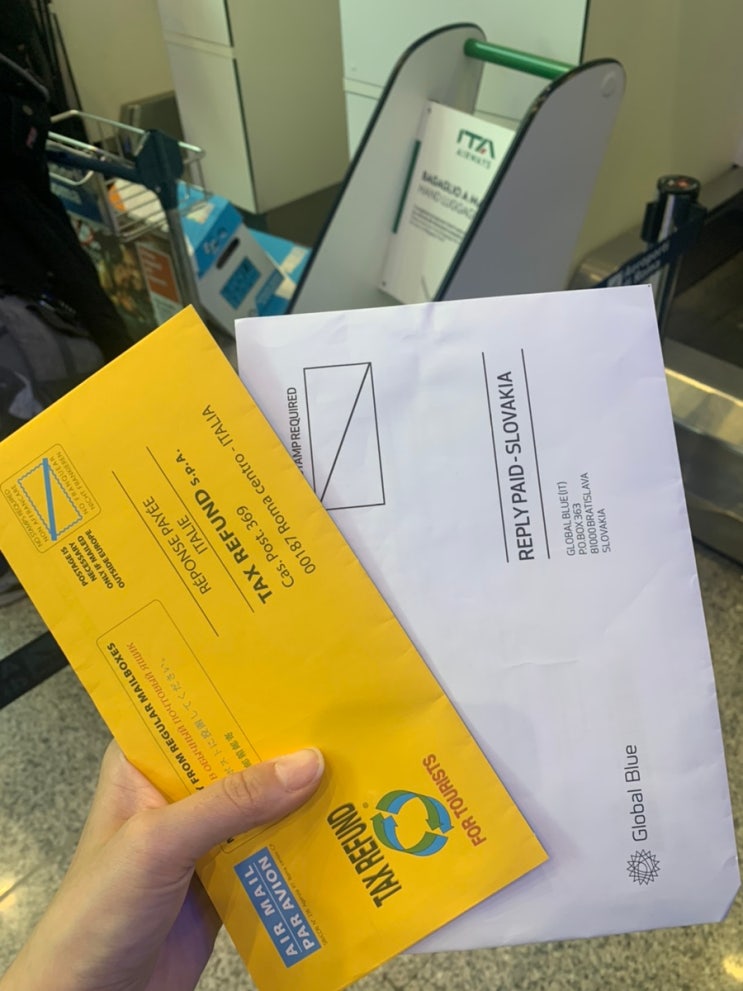 피우미치노 공항에서 택스리펀 받기 (글로벌 블루, 노란 봉투)