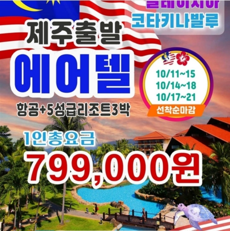제주 직항 말레이시아 코타키나발루 3박5일 에어텔 !! 마감 임박~!