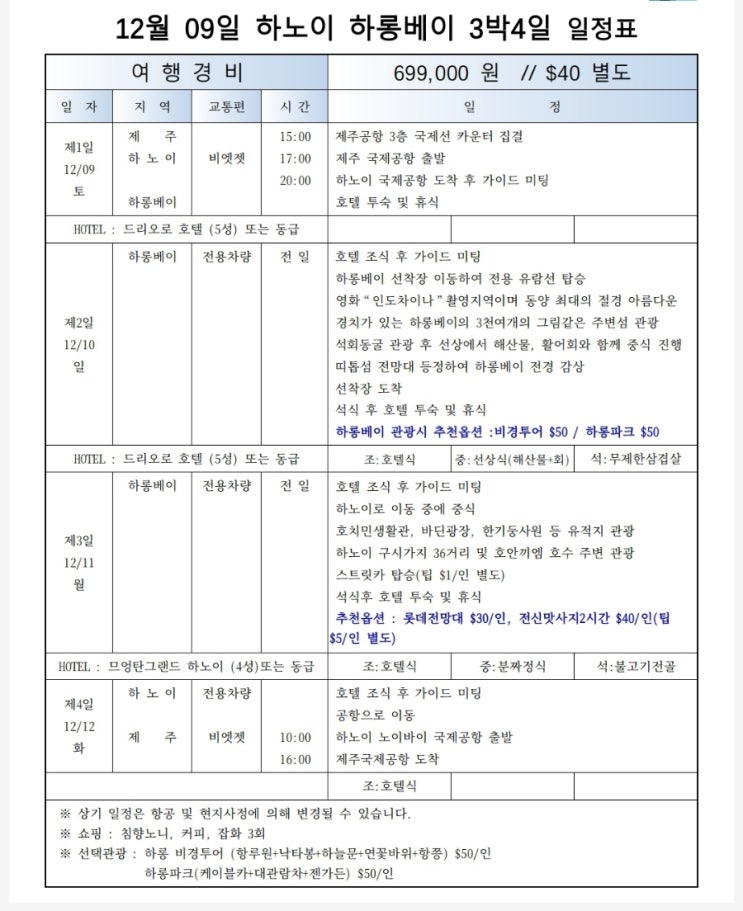 안녕하세요! 제주 직항으로 가볍게 베트남 하노이 하롱베이로 떠나요~~! 전세기 상품으로 가격도 아주 착하...