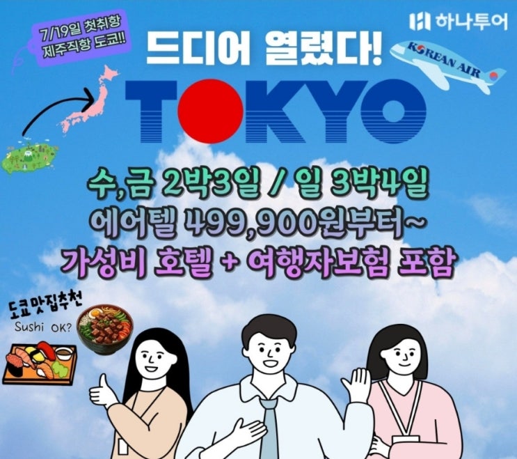 안녕하세요~! 7/19(금) 부터 제.주.직.항 도쿄가 드디어 첫 취항하게 되었습니다! 무려 대한항공으로 제주 ...