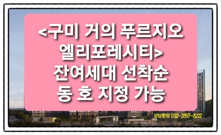 안녕하세요^^ <구미 거의 푸르지오 엘리포레시티> 분양권 잔여세대 선착순 매물 다수 보유 중입니다....