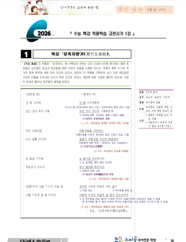 [2025] 수특 문학 고전시가 1강 "모죽지랑가/화왕가"