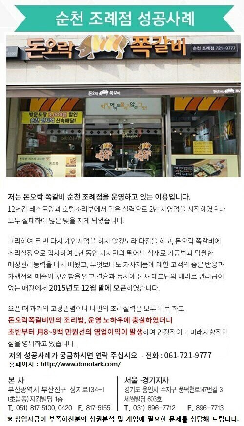 돈오락쪽갈비 소자본창업천만원수익 사업성공사례