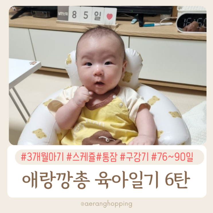 애랑깡총 육아일기 6탄 D+76 D+90 3개월아기 스케쥴 12시간 통잠비결 터미타임 애개육아 구강기 오늘부터...