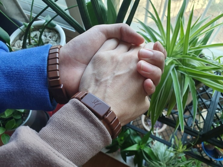 건강팔찌 만들어 엄마 손목에 끼워드린다.