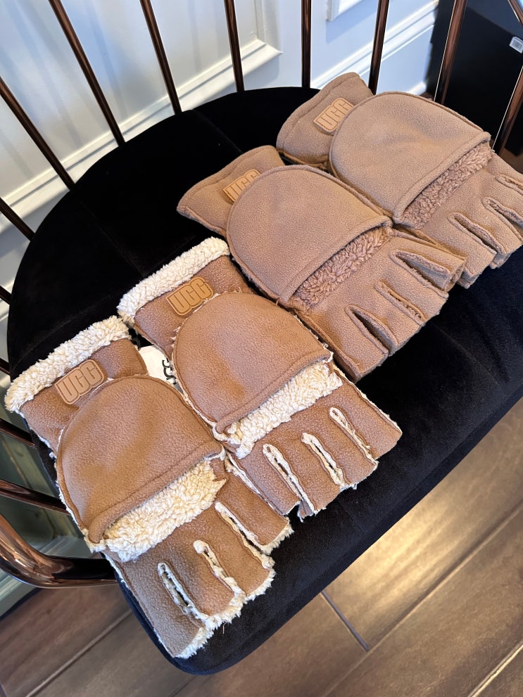 < Ugg > 플리스플립 미튼 체스트넛 컬러 - S/M , L/XL - 방한용 장갑이에요 아이보리 뽀글이들...