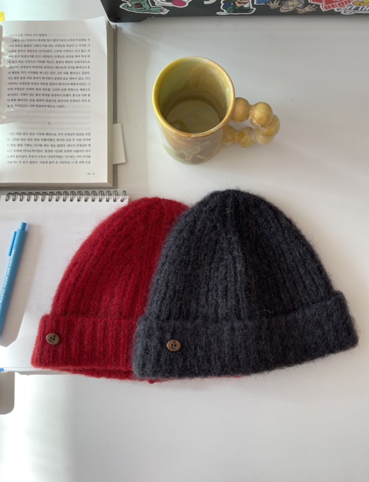 뽀송 알파카 비니 | 혼용률 울35 아크릴45 나일론10 알파카10 | 사이즈 FREE | 컬러 챠콜 / 레드 | 가...