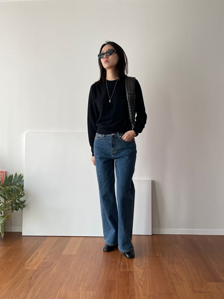 와이드 일자핏 진 | 혼용률 코튼100 | 사이즈 S/M/L (*모델 스몰 착용) (S 허리35 힙46.5 밑위28.5 허...