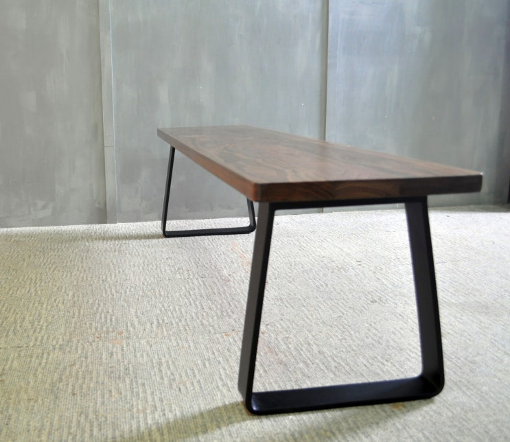 평철을 구부려 제작된 사다리꼴 모양의 테이블 벤치 세트입니다. 평철다리의 특징은 역시 넓고 얇은 모양인...