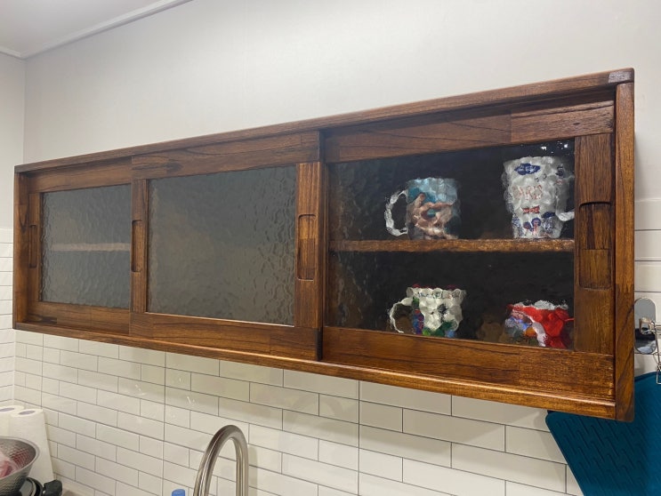 벽걸이 미닫이 찬장/원목 싱크대 상부장