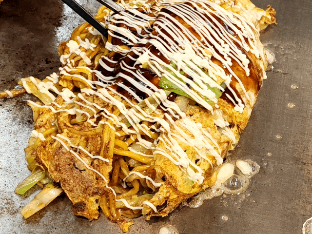 [오사카 우메다역 맛집]철판요리 사쿠라_오꼬노미야끼&야끼소바