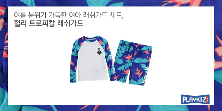 [헐리키즈] 여름 분위기 가득한 여아 래쉬가드 세트, 헐리 트로피칼 래쉬가드