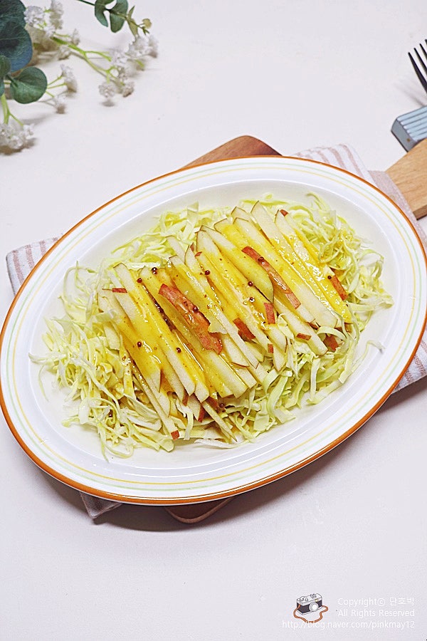 건강 식단, 다이어트식단에 빠질 수 없는 샐러드~ 오늘은 식이섬유가 풍부한 양배추와 아삭 달콤 맛있는 사...