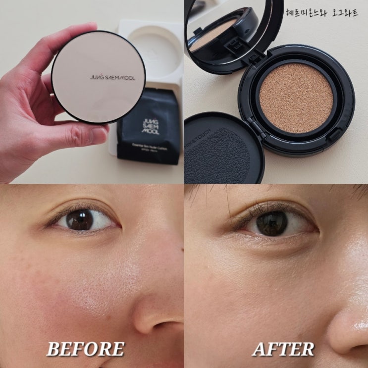정샘물 에센셜 스킨 누더 쿠션 14-gram + 리필 14-gram, 페어, 1세트 실사 사용 후기 1. 정샘물 에센셜 스...