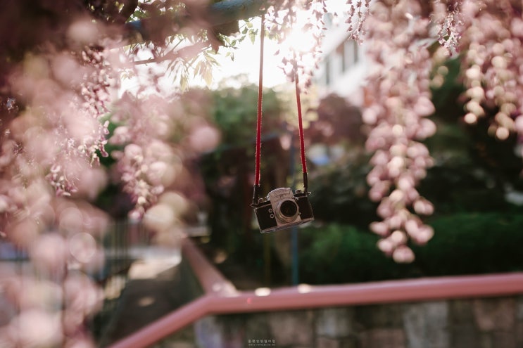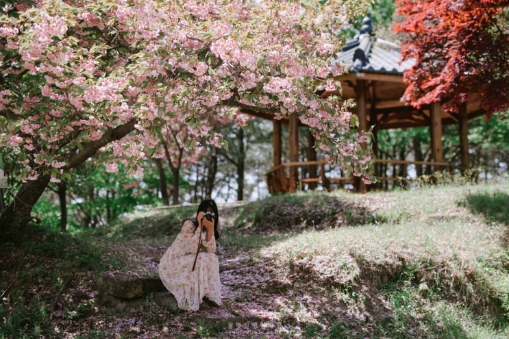 ::: 1년전, 2021년 ::: 바닥엔 벌써 겹벚꽃잎이 떨어졌다. 조금 늦은걸까. 삼각대와 카메라 가방을 둘러매...
