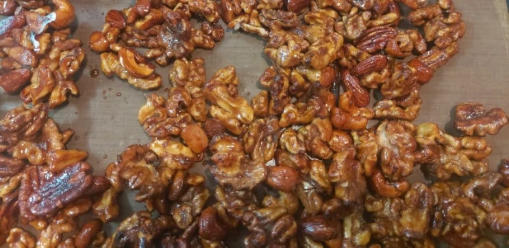 아가베 시럽으로 호두강정을 만들었다. 설탕과 물엿을 배합해서 만들 때는 비율이 이상하면 굽고나서도 끈...