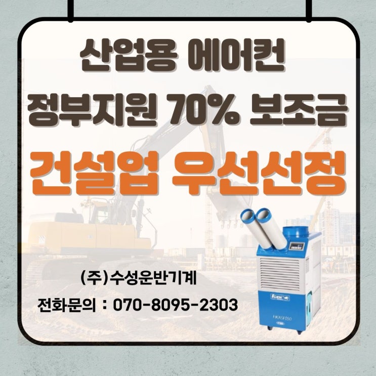 건설업 이동식 산업용 에어컨 정부지원 70% 보조금 지원받고 ㈜수성운반기계와 함께 경제적으로 준비하세요...