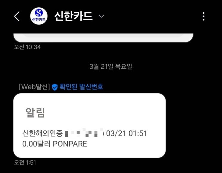 신한카드 공식 번호로 오늘 새벽 1시 51분 해외인증 됨.. PONPARE.. 찾아보니 일본이던데 난 육아로...