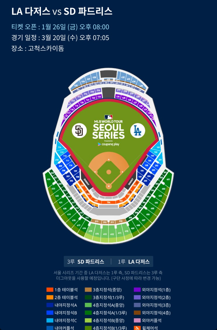 MLB 개막전 티켓 예매 mlb 2024 메이저리그 월드투어 서울시리즈 티켓팅 방법 가격 한국 개막전 예약 LA다저스 샌디에이고 쿠팡플레이 야구 입장권