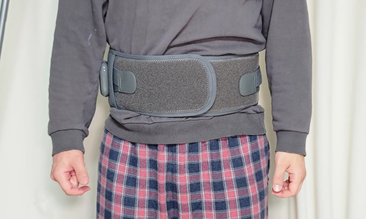 자세가 구부정해져서 허리보호대 겸 허리마사지기를 착용법대로 사용해 봤어요. 복부온열마사지기 효과까지...