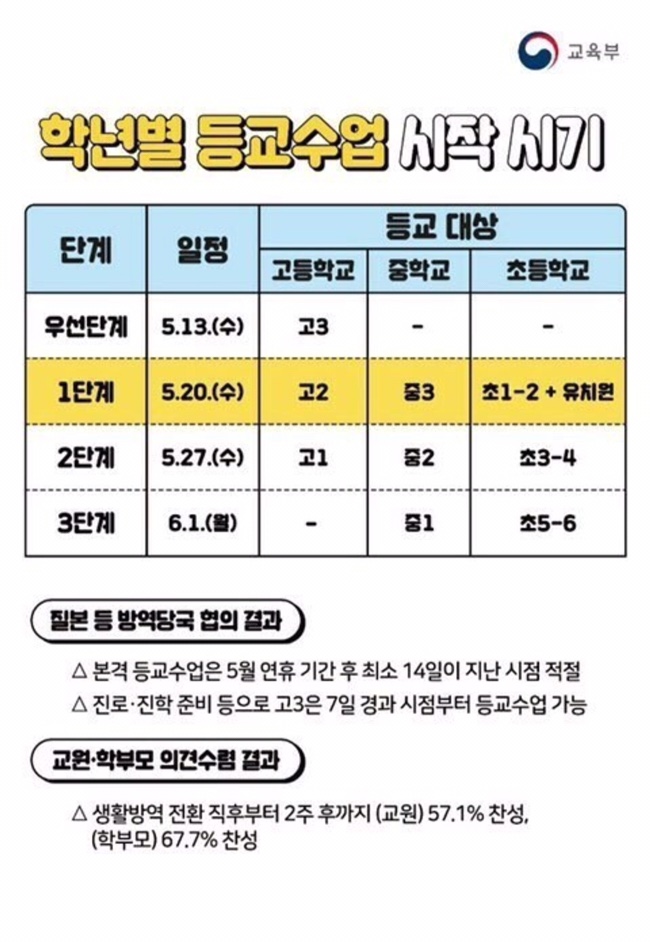 #등교수업 #학년별등교수업시기 그런데 초등은 왜 1,2학년이 먼저가지?? 초5,6이 젤 늦네 암튼, 메이는 6월...